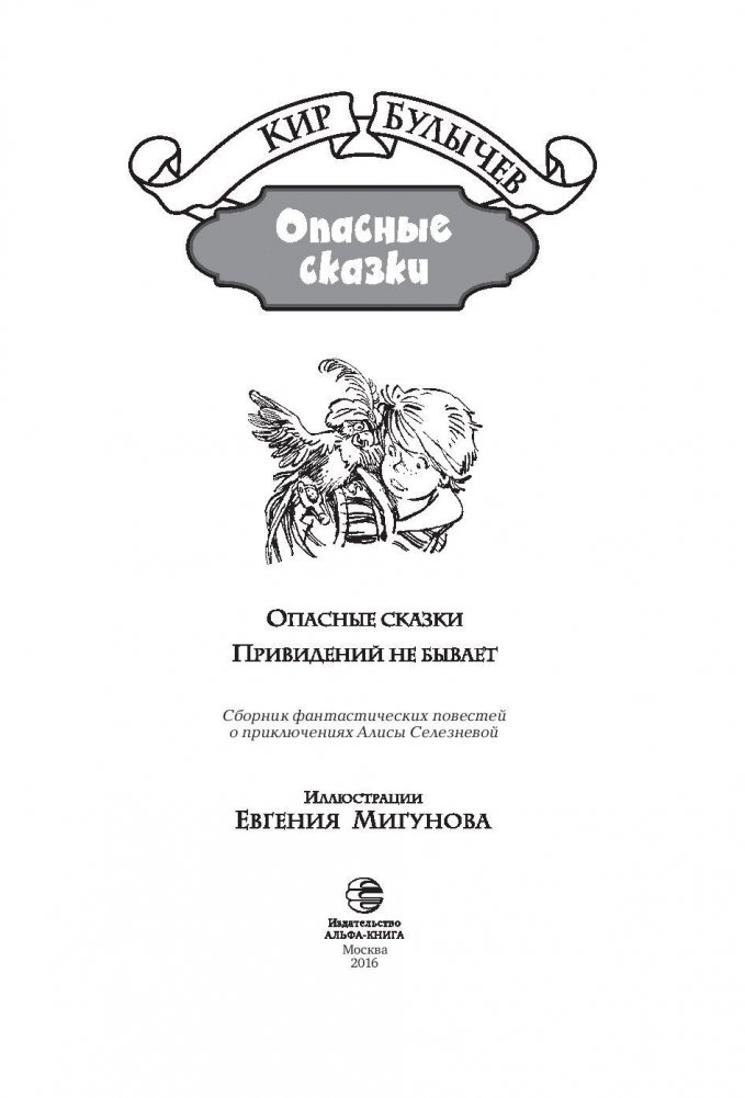 В сборник Кира Булычева вошли две повести об Алисе Селезневой: «Опасные сказки» и «Привидений не бывает». В первой повести Алисе, школьнице из XXI века, предстоит побывать в эпохе легенд. Комиссар ИнтерГалактической полиции Милодар попросил Алису Селезневу под видом мальчика Аладдина помочь ему разыскать пропавшего мужа прекрасной Шехерезады, легендарного Синдбада-морехода. Во второй повести Алисе придется совсем нелегко: ведь она окажется в замке прославленного вампира — графа Дракулы! И как справится девочка из будущего с вампирами, привидениями и прочими порождениями Тьмы, которых, по ее мнению, вообще не бывает? В издании воспроизводятся 137 иллюстраций самого известного иллюстратора Кира Булычева — Евгения Мигунова.