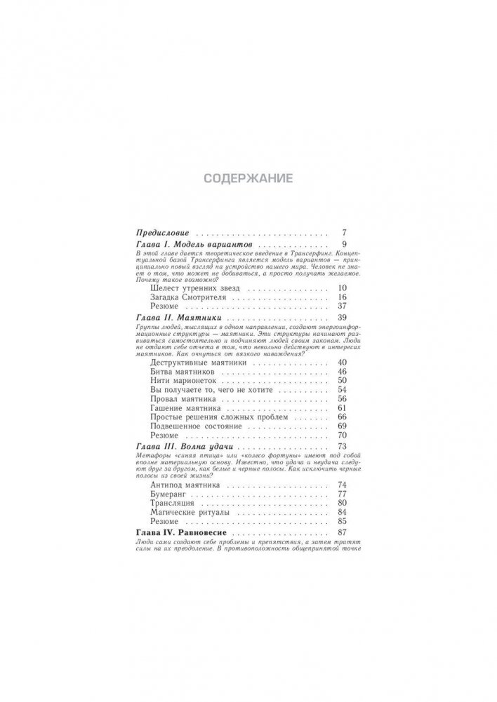 Трансерфинг – это мощная техника, дающая власть творить невозможные с обыденной точки зрения вещи, а именно – управлять судьбой по своему усмотрению. Никаких чудес не будет. Вас ожидает нечто большее – незнакомая реальность намного удивительней любой мистики. Вы испытаете непередаваемые чувства, когда обнаружите у себя способности, о которых и не подозревали. Это подобно ощущению свободного падения – невероятное имеет такую ошеломляющую дерзость превращаться в реальность, что просто дух захватывает!