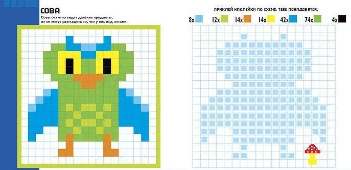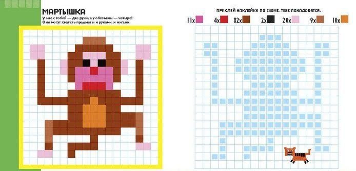 Животные. Пиксели. Наклей и раскрась