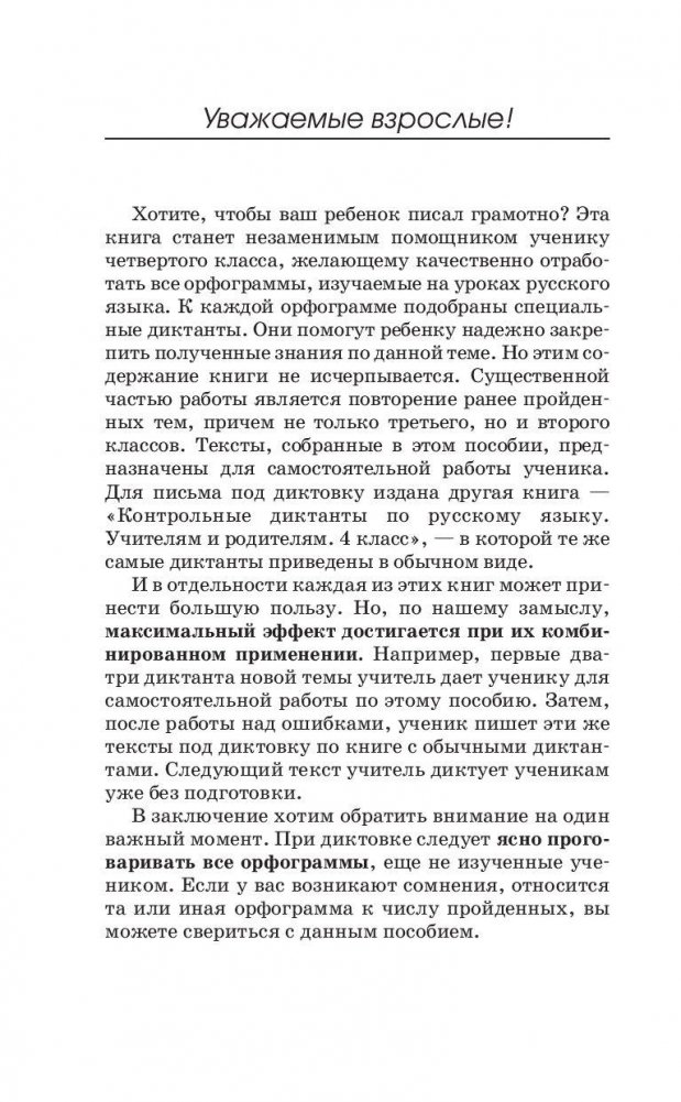 Подготовка к контрольным диктантам по русскому языку. 4 класс