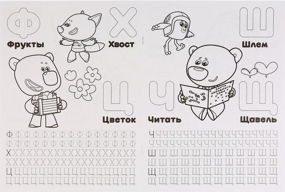 Раскраска с прописями "Азбука и цифры. Ми-ми-мишки"