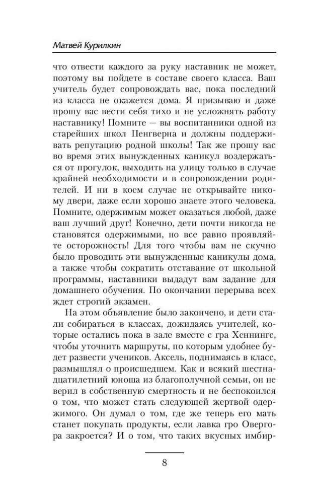 Несмотря на то, что профессия охотника на одержимых выглядит очень романтично и будоражит своей таинственностью, мало кто всерьез собирается стать охотником. Аксель готовился пойти по стопам отца и стать горным инженером. Не получилось. Если у тебя обнаруживается способность чувствовать одержимых, особого выбора у тебя нет. Вот и приходится уезжать из родного дома, чтобы поступить в обучение к эксцентричной и немного циничной наставнице. Только спокойным обучение столь опасной профессии быть не может. Будущие охотники не сидят за партами – они посещают самые темные уголки города, общаются с убийцами и отбросами общества, иногда им приходится делать работу властей – искать преступников, попутно охотясь на одержимых. А что делать? Ведь это теперь твоя работа…