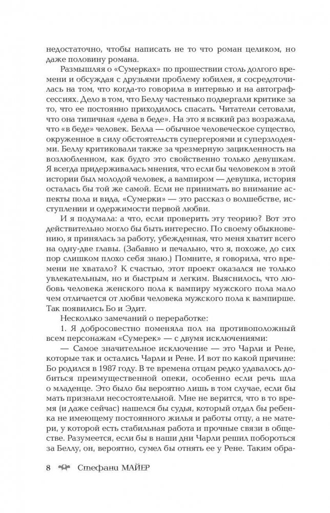 Первая часть уникального «двойного издания» - знаменитые «Сумерки» в новом переводе. А вот вторая - новый проект Стефани Майер, полная «перезагрузка» культового романа! Вы хотите узнать, что было бы, если бы Белла была юношей, а Эдвард - девушкой? Итак, в скучный городок Форкс переезжает юный Бофорт Свон, которому предстоит встретить таинственную красавицу Эдит Каллен, и эта встреча изменит его жизнь навсегда...