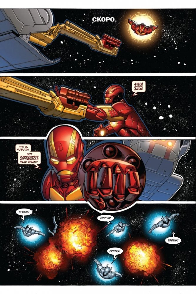 Чтобы отвечать на угрозы постоянно меняющегося мира, Тони Старк (он же Железный Человек) разработал новый модульный костюм, который можно модифицировать по мере необходимости. С помощью него он смог остановить четыре различные смертельные угрозы, которые появились из-за техно-вируса Экстремис, меняющего ДНК. Каждое противостояние показало Старку тот смелый и безграничный потенциал, которым обладает человечество, заставив его сомневаться в успехе своих достижений. Надо было что-то менять. С новым костюмом, новым ИИ и желанием расширить горизонты Тони отправляется в дальний космос, где его ждёт героическое приключение среди звёзд. Но действительно ли Железный Человек готов к Последнему Рубежу?