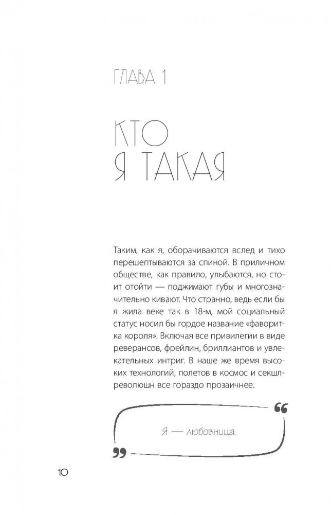 Ника Набокова – провокационная и откровенная, красивая молодая женщина с мозгами, которым может позавидовать любой успешный мужчина. В ее блоге более 300 тысяч читателей. Почти 8000 человек, обратившихся за помощью и советом. Десятки тысяч благодарностей от тех, кому ее статьи помогли выжить в сложных отношениях. «Да, я любовница! И именно поэтому я знаю все о том, почему, из-за чего, ради чего и для чего люди изменяют. Эту правду вам не расскажут в глянцевых журналах и на популярных ток-шоу. Добро пожаловать в мой мир, где я расскажу все об изнанке неверности. Какого черта его туда понесло, чего ждать дальше и что с этим всем делать? Меня можно ненавидеть, обвинять в разрушении чьей-то семьи, бояться и пытаться отрицать факт моего существования. Но это не отменяет главного – я знаю, как выжить в любовном треугольнике». Никакой женской логики, стенаний и «ой, все». Бьющие под дых формулировки, глубинное знание человеческой психики и отношений, эффективные и на 100% работающие методики – Ника расшатает ваши устои и выведет из зоны комфорта. Будьте готовы!