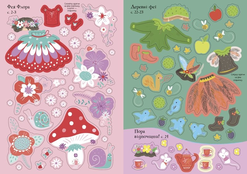 Познакомься с очаровательными феями! Вместе с ними путешествуй по волшебному лесу и подбери каждой феечке красивый наряд! Читаем и играем! Развиваем внимание, воображение, мелкую моторику и художественный вкус.