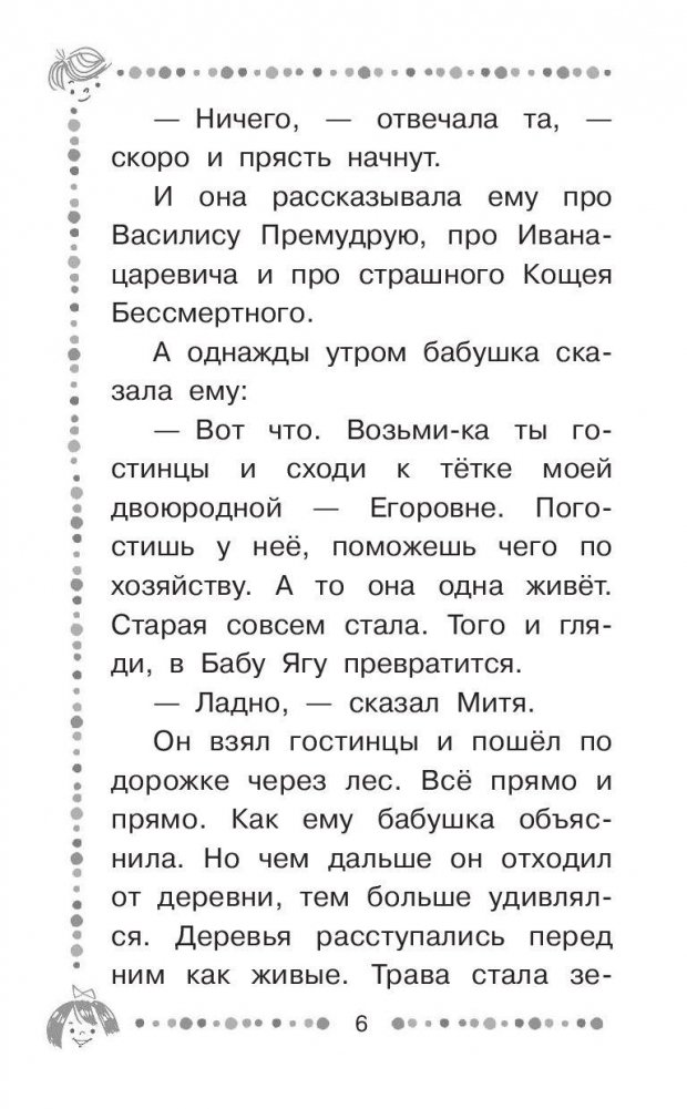 «Не каждому так повезёт как Мите – главному герою книжки. Поехать на каникулы к бабушке не скучно, а очень даже интересно. Ведь бабушка Мити никакая не бабушка, а настоящая Баба Яга, но совсем не такая, как в народных сказках, а, наоборот, добрая и справедливая. Митя со своей бабушкой отправится в самое настоящее приключение. Вниз по волшебной реке» - сказочная повесть Э.Н. Успенского, вышедшая в 1972 году. Иллюстрации к книге нарисовал В.А. Чижиков. Для дошкольного возраста.