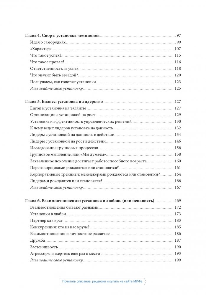 Люди с фиксированным сознанием (с установкой на данность) верят, что врожденные ум и талант неизменны. Они тратят время на то, чтобы доказать всем, что они умны и талантливы, вместо того, чтобы развивать свои таланты. Кроме того, они верят, что талант ведет к успеху сам по себе. И они ошибаются. Люди с гибким сознанием (с установкой на рост) верят, что все качества можно развить, планомерно работая над собой, а изначальный уровень интеллекта и таланта — это всего лишь стартовая точка. Такой подход формирует любовь к постоянному обучению и устойчивость к трудностям и неудачам.