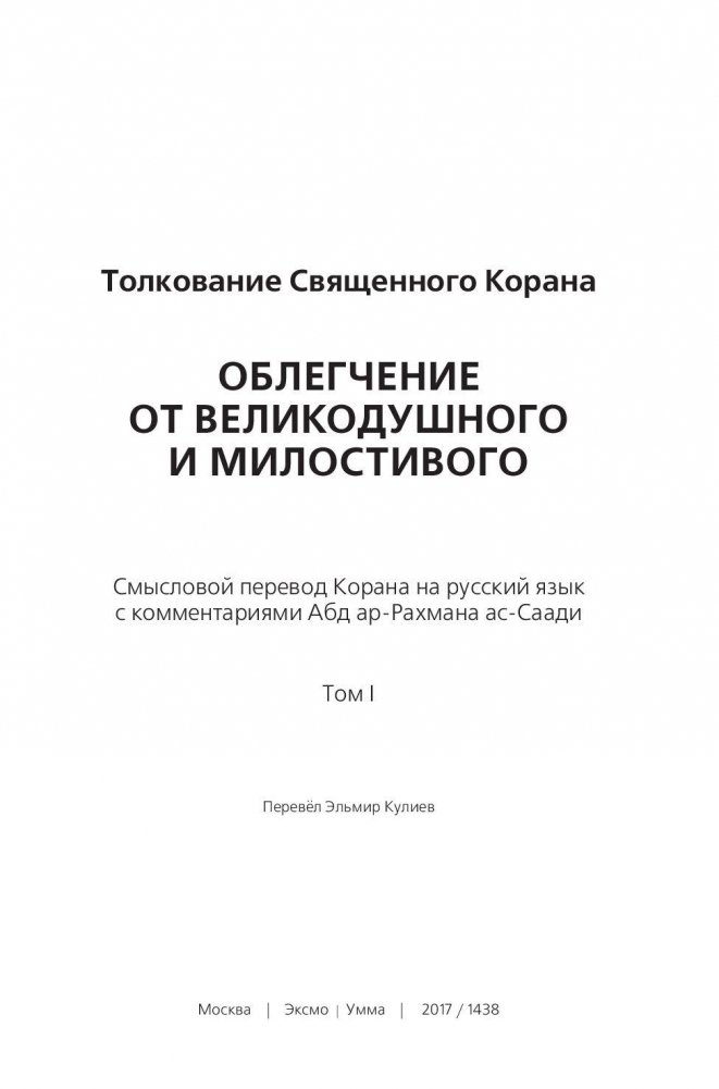 Толкование Священного Корана "Облегчение от Великодушного и Милостивого" (количество томов: 2)