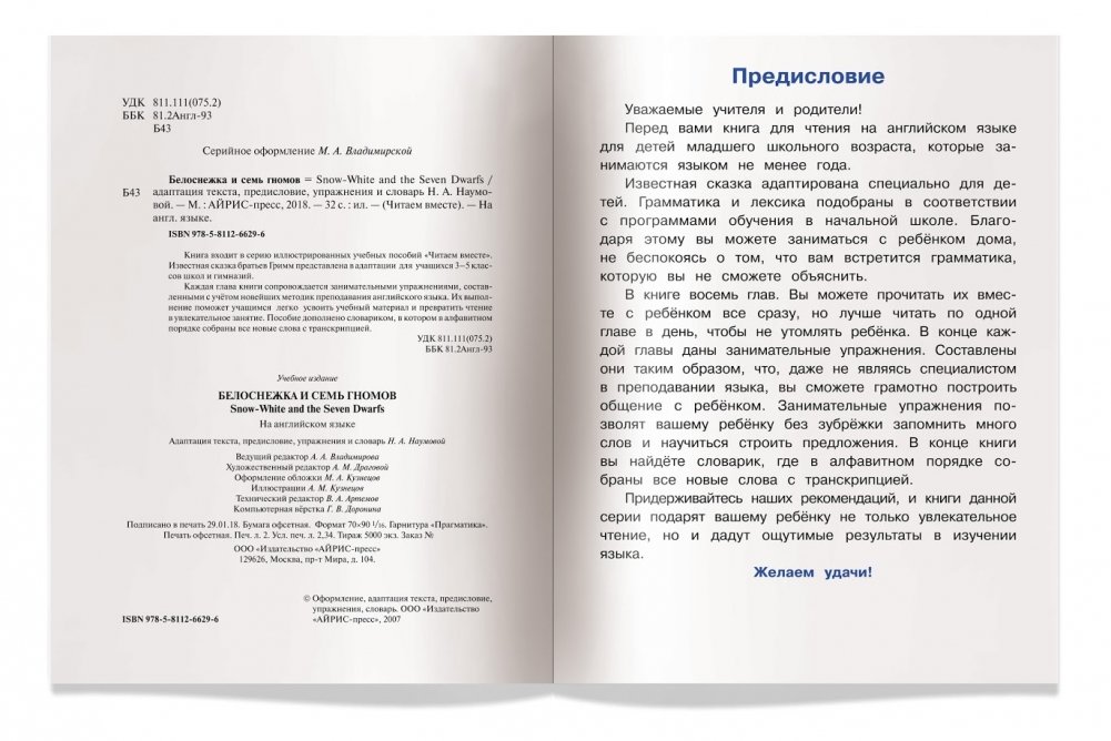 3 уровень. Белоснежка и семь гномов. Snow White and the Seven Dwarfs (на английском языке)