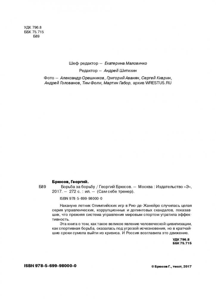 Накануне летних Олимпийских игр в Рио-де-Жанейро случилась целая серия управленческих, коррупционных и допинговых скандалов, показавших, что прежняя система управления мировым спортом утратила эффективность. Эта книга о том, как такое великое явление человеческой цивилизации, как спортивная борьба, оказалась под угрозой исчезновения, но в кратчайшие сроки сумела выйти из кризиса. И Россия возглавила это движение.