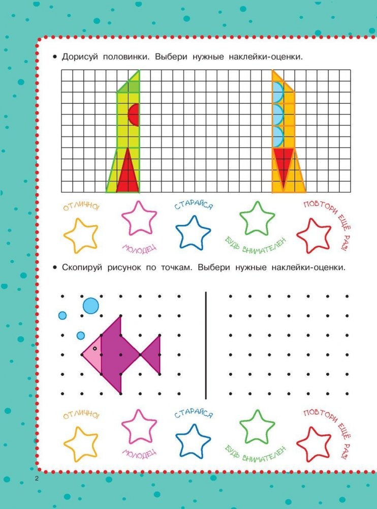 Рисуем по клеточкам и точкам серии "Тренажёр с наклейками для умных малышей"