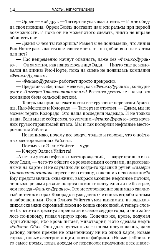 К власти в США приходят социалисты и правительство берет курс на "равные возможности", считая справедливым за счет талантливых и состоятельных сделать богатыми никчемных и бесталанных. Гонения на бизнес приводят к разрушению экономики, к тому же один за другим при загадочных обстоятельствах начинают исчезать талантливые люди и лучшие предприниматели. Главные герои романа стальной король Хэнк Риарден и вице-президент железнодорожной компании Дагни Таггерт тщетно пытаются противостоять трагическим событиям. Вместо всеобщего процветания общество погружается в апатию и хаос.