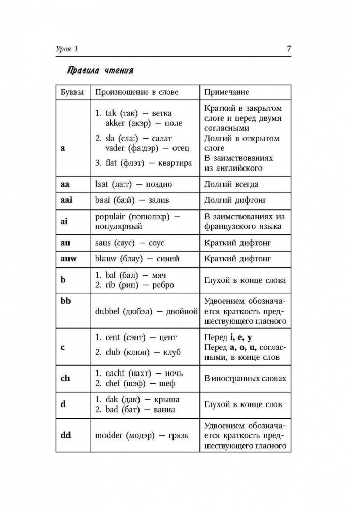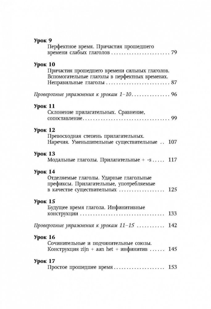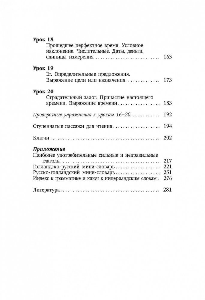 Пособие содержит 20 уроков нидерландского (голландского) языка, изложенных в доступной форме. Каждый урок состоит из пяти разделов: грамматики, словаря, упражнений с ключами, тренировки и разговора. Издание предназначено для всех, кто желает самостоятельно изучать нидерландский язык. Отдельно можно приобрести диск в формате МР3. Издание на русско-голландском языке.