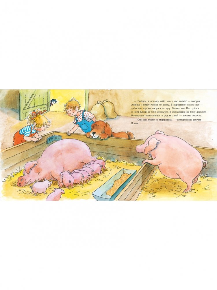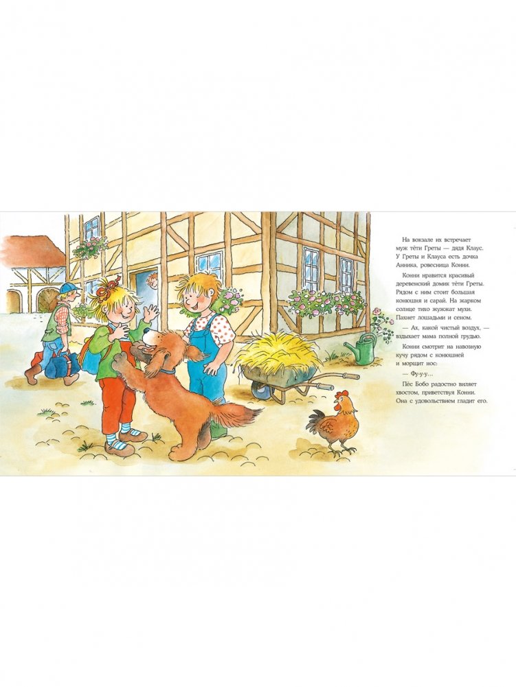 На каникулах мама с Конни отправляются в деревню к маминой подруге. Там Конни впервые видит настоящих курочек, свиней, кроликов и даже сама доит корову! Неделя в деревне пролетает быстро, а новые друзья и хорошие воспоминания остаются с Конни навсегда.