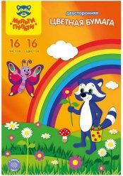 Цветная бумага, двусторонняя, A4, 16 листов, 16 цветов