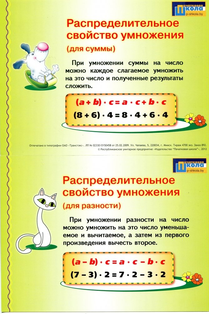 Распределительное свойство умножения (для разности) / Распределительное свойство умножения (для суммы)