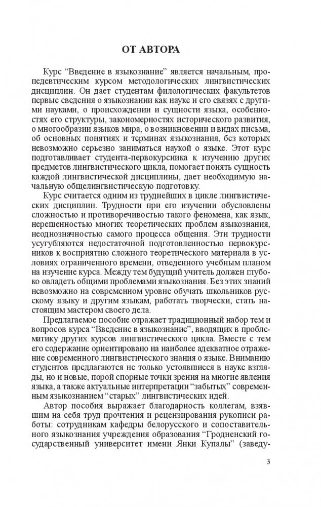 Отражены темы и проблемы курса “Введение в языкознание”. Рассмотрены вопросы происхождения, сущности и функций языка. Раскрыты особенности фонетики и фонологии, морфемики и словообразования, лексикологии и семасиологии, грамматики, письма. Приведена классификация языков, характеризуются закономерности исторического развития языков.