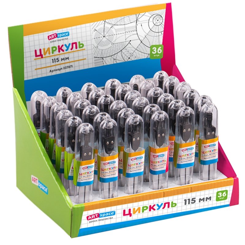 Циркуль ArtSpace металлический, 115 мм, пластиковый пенал. Арт. 227871