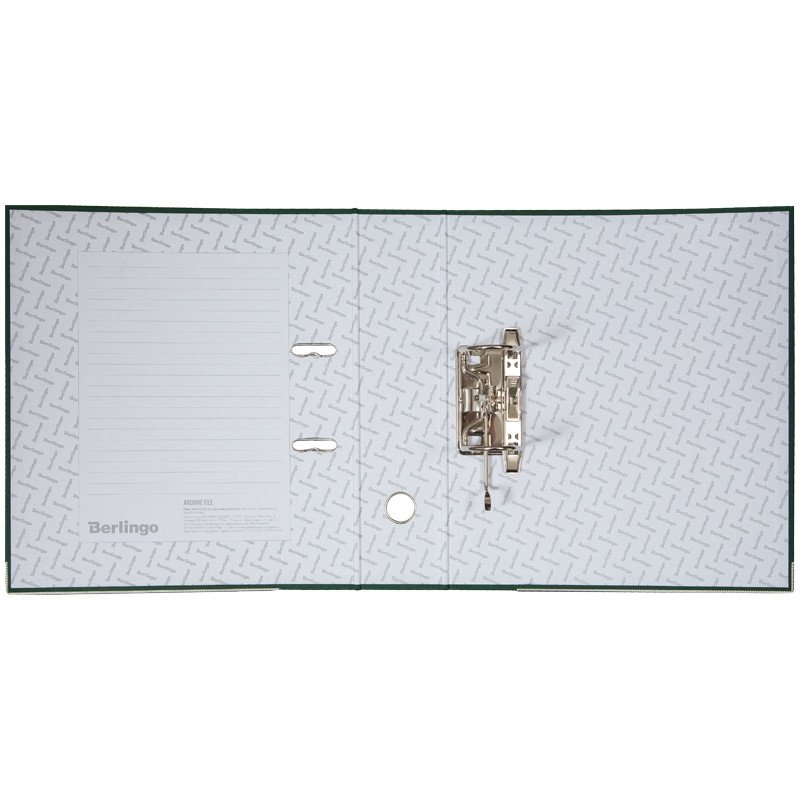Папка-регистратор Berlingo серии Hyper формата А4 идеальна для создания архива. Папка размером 320х290х80 мм изготовлена из жёсткого износостойкого картона с односторонним покрытием из качественного бумвинила зелёного цвета. Папка эффективно экономит офисное пространство. Ширина корешка составляет 80 мм. Конструкция разработана с учётом всех особенностей эксплуатации. Выгодно отличается надёжным арочным механизмом из качественного металла, наличием кармана на корешке со сменным информационным ярлыком для маркировки, полем для записей на внутренней стороне обложки, отверстием для удобного снятия папки с полки. Для повышения износостойкости нижние грани укреплены металлическим кантом.