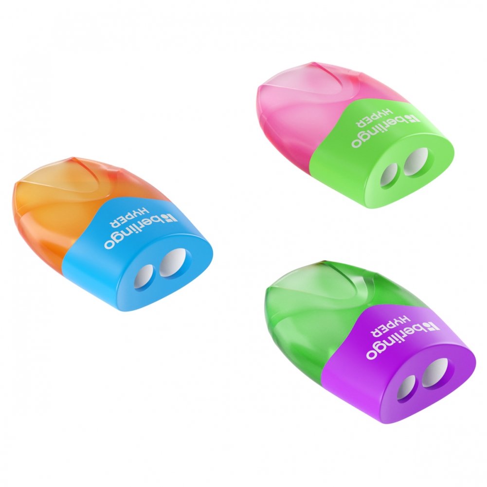 Точилка пластиковая Berlingo "Hyper" 2 отверстия, контейнер, ассорти. Арт. BBp_15021