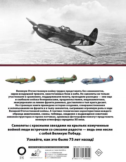 На страницах книги приведена история создания, совершенствования и использования на фронте и в тылу самолетов, сыгравших огромную роль в ходе Великой Отечественной войны. А тактико-технические характеристики каждого образца авиатехники, схемы, таблицы, сведения о выдающихся советских авиакострукторах и героях-летчиках, архивные фотографии помогут представить военную атмосферу середины ХХ века.