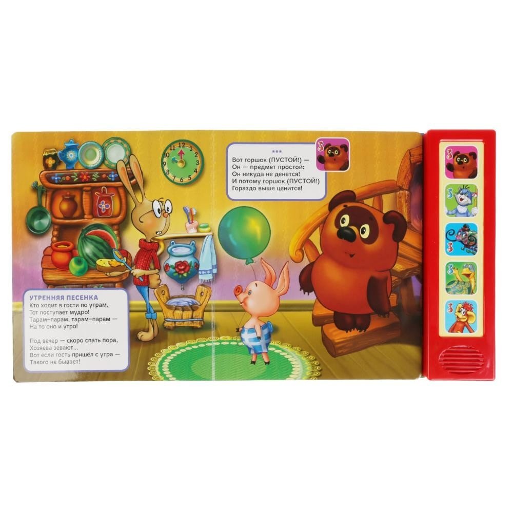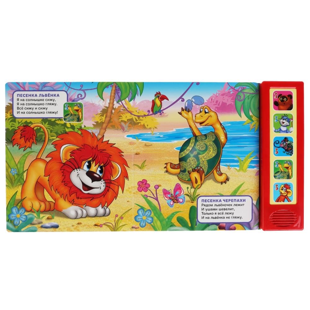 Малыш будет с удовольствием рассматривать яркие картинки, читать, слушать песенки и подпевать. Ребёнок легко освоит включение звука: по нажатию на кнопку звук включится, при втором нажатии выключится. На каждой кнопочке записано по 2 песенки. Композиции исполняются профессиональными артистами. Книжка сделана из плотного картона, поэтому родители могут не опасаться за её сохранность. Благодаря компактному формату её удобно брать с собой.