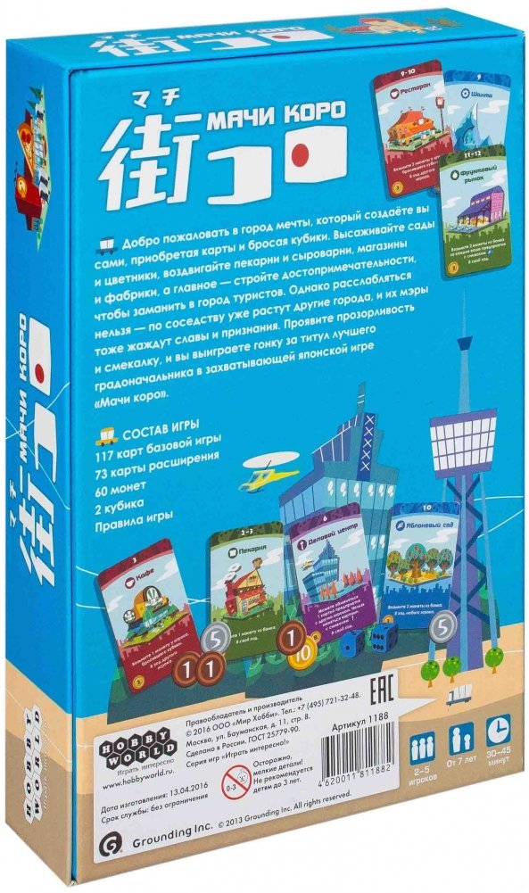 Добро пожаловать в город мечты, который создаёте вы сами, приобретая карты и бросая кубики. Высаживайте сады и цветники, воздвигайте пекарни и сыроварни, магазины и фабрики, а главное — стройте достопримечательности, чтобы заманить в город туристов. Однако расслабляться нельзя — по соседству уже растут другие города, и их мэры тоже жаждут славы и признания.