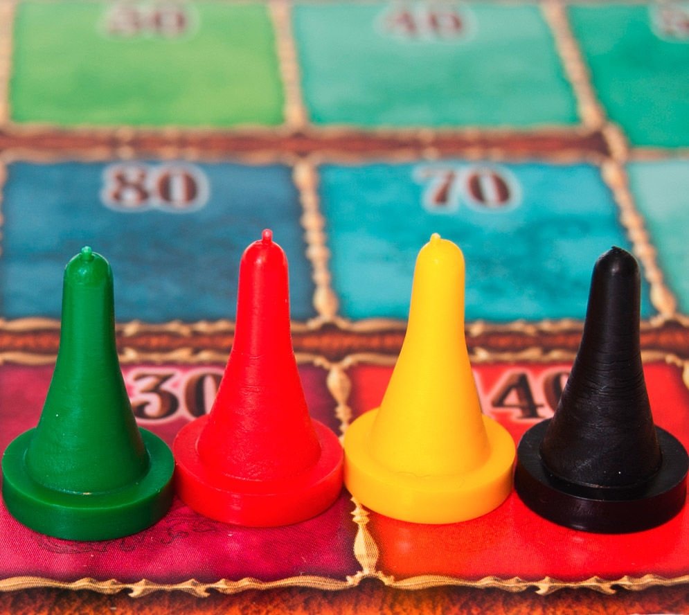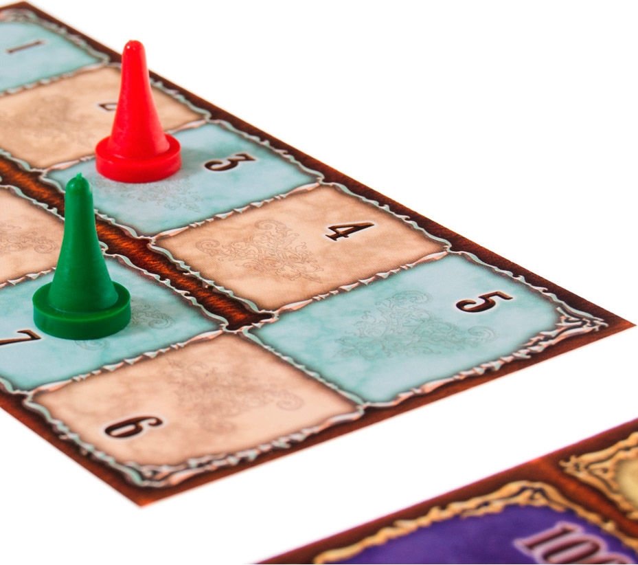 Состав игры: 76 карт, 2 счетчика очков, 12 фишек игроков, правила игры.