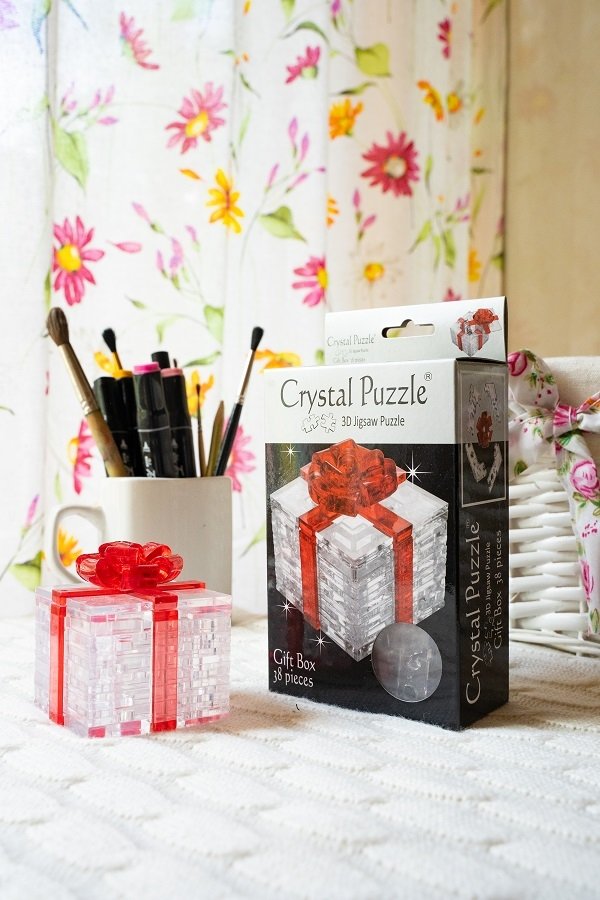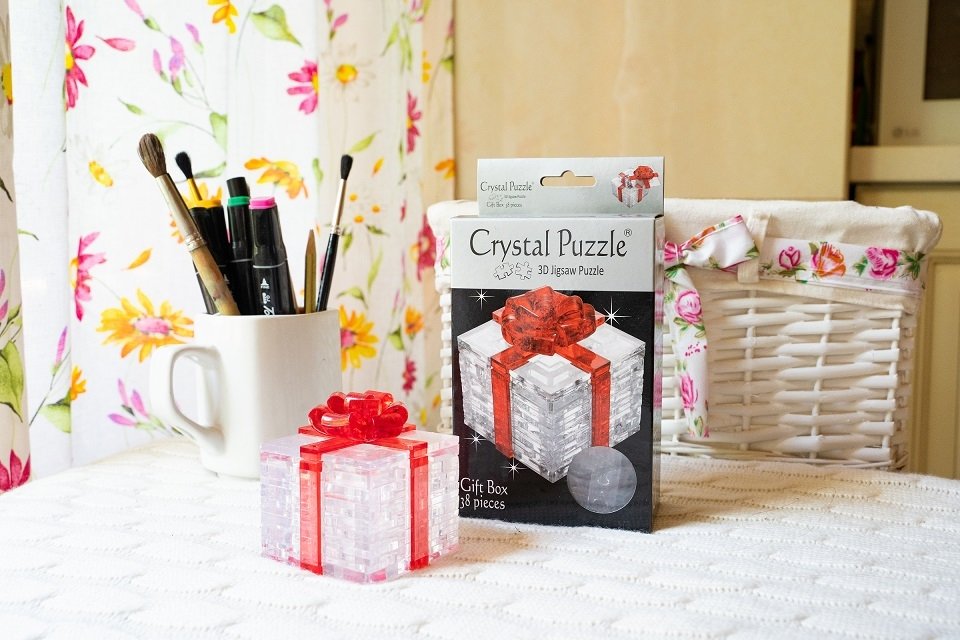 Трехмерная головоломка "Подарок". Всего в наборе 38 прозрачных пластиковых деталей, из которых можно собрать оригинальную фигурку. Фигурка безусловно украсит любой интерьер и станет отличным подарком для самых близких.