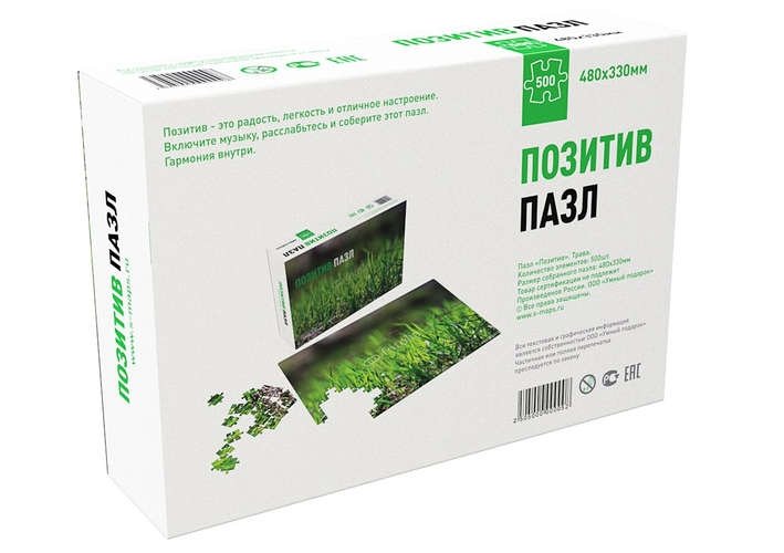 Позитив - это радость, легкость и отличное настроение. Включите музыку, расслабьтесь и соберите этот пазл. Гармония внутри. Пазл состоит из 500 элементов. Стильный дизайн и качественное исполнение порадуют любого ценителя пазлов.