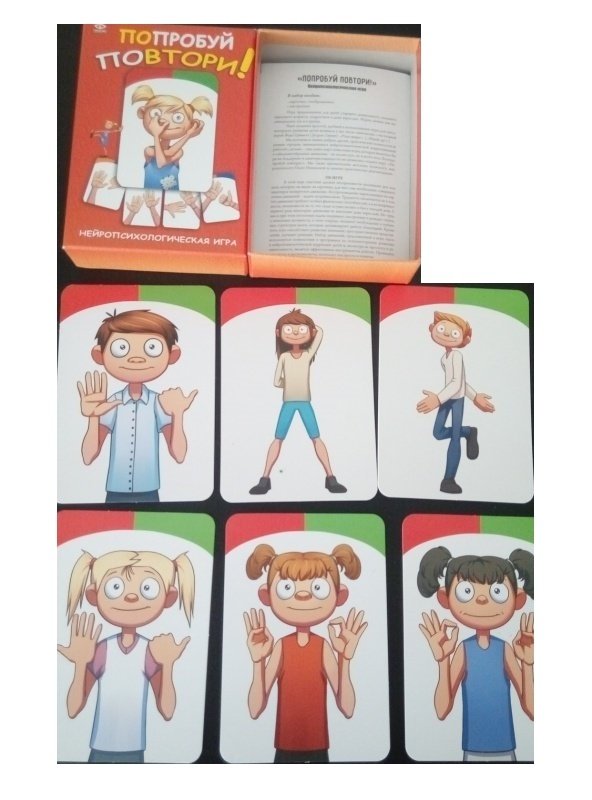 Об игре: в этой игре участник должен воспроизвести положение рук или позу, которую он видит на картинке, для чего ему необходимо совершить некоторое конкретное движение. Воспроизведение нарисованных на карточках движений - задача нетривиальная. Трудность заключается не в том, что движения требуют особых физических способностей, а в их непривычности, непохожести на те, что люди осуществляют в быту каждый день. С первого раза некоторые движения не выполнит даже взрослый. Но трудная и при этом посильная задача поднимает настроение и рождает поиск, а поисковая активность, в свою очередь, вызывает возбуждение в глубинных структурах мозга, которые активизируют работу полушарий. Кроме того, игра способствует развитию внимания, пространственных представлений, улучшает реакцию. Набор движений, предложенный в игре, часто используется психологами в программах по психомоторному развитию и нейропсихологической коррекции детей и, несмотря на простоту и увлекательность, является эффективным инструментом работы. Проводить игру могут и неспециалисты, поскольку она проста и понятна.