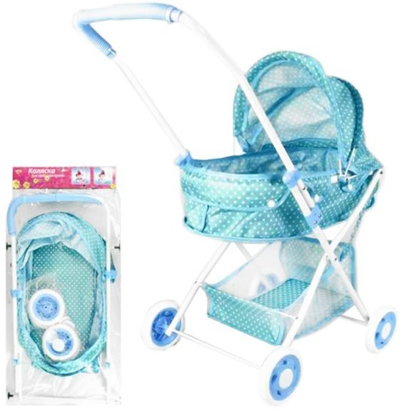 Легкая, складная, четырехколесная коляска-люлька голубого цвета для кукол. Рама коляски сделана из облегченного металла, поэтому она легкая даже для крохотной девочки, а ручка покрыта прорезиненным материалом. Колеса небольшие, выполненные из пластика в тон раме и ткани. Играть с коляской можно как в помещении, так и на улице, что, несомненно, порадует вашу малышку: ведь теперь свою любимую куклу она сможет брать с собой на прогулки!