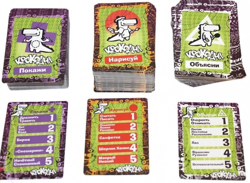 Наконец-то смешных, слишком взрослых, жутковатых и угарных слов набралось на целый выпуск карточного Крокодила. Некоторые из них смешные даже не сами по себе, а тем, как их показывают в режиме пантомимы. Большой куш, например, смутил не одну девушку, а некоторых парней прямо-таки испугал. Ладно, если объяснять его словами, а не жестами, легче всё равно не станет, но отгадают быстрее. А если рисовать, отгадают ещё быстрее, поэтому большой куш не стоит в заданиях на рисование. Тренировка мимики, жестов, риторики и искусства изображать предметы. Попробуете показать всем телом угар или нарисовать виагру? Кстати, коробочка игры такая маленькая, что можно носить её в рюкзаке или сумке постоянно, а в самый скучный момент вечеринки коварно доставать её ловким жестом. Таймер обычно используют на смартфоне, а рисовать можно и на салфетке (некоторые делают это с помощью планшета - очень экологично). 405 заданий - это на кучу оригинальных партий.