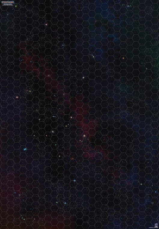Данное игровое поле представляет собой заламинированную двустороннюю карту космического пространства. Одна сторона карты предлагает Вам чёрные и мрачные пространства глубокого космоса с отблесками далёких звёзд. Кто знает, что Вас там может ждать? Флотилии звёздных пиратов? Остовы кораблей давно забытых цивилизаций? Рои космических насекомых?