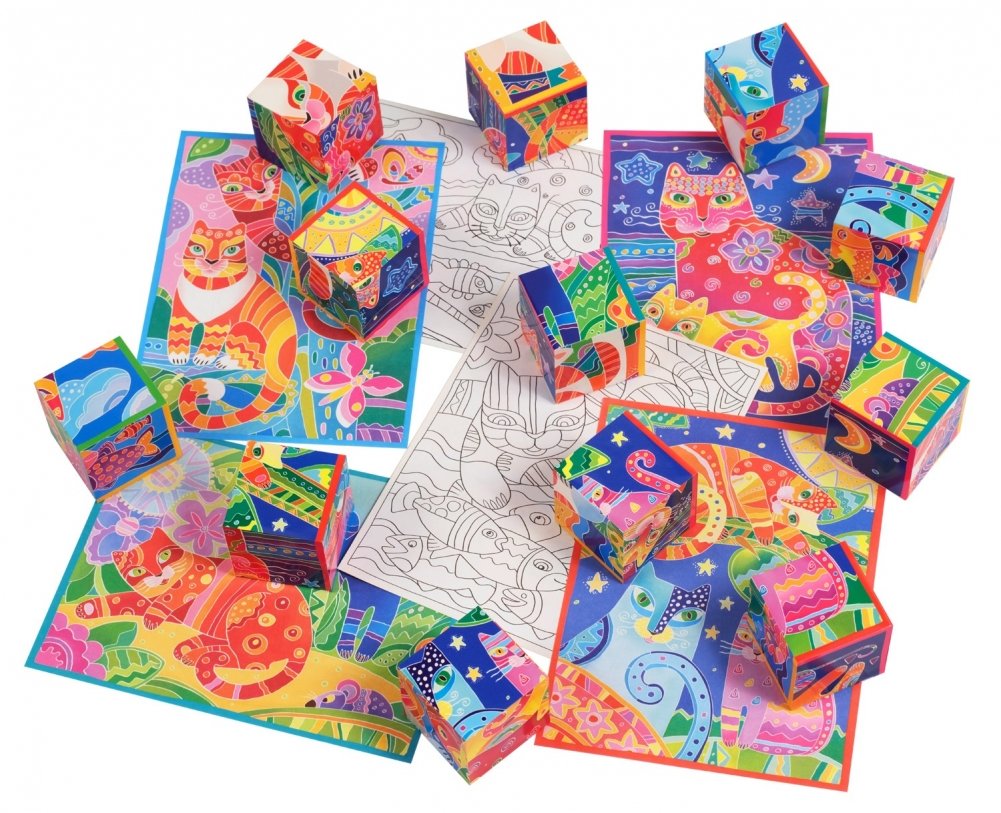 В наборе есть 6 картинок-раскрасок со сказочными котами. А ещё маленькое чудо в подарок. Сложите картинку и переверните все кубики. Смотрите на новую картинку!
