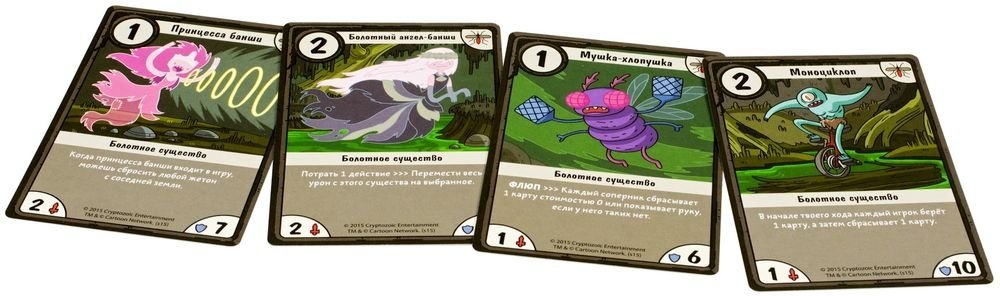 "Время приключений: Карточные войны. Снежный король против Марселин" принадлежит к жанру ККИ и представляет из себя настольный поединок между двумя игроками. Каждый из них обладает собственной колодой не менее, чем из сорока карт и пытается одолеть соперника, используя различные тактики, расставляя на поле боя могучих существ, совершая оптимальные ходы, вовремя используя способности карт и т. д. – всё для того, чтобы понизить жизнь соперника с 25 до нуля. Так как это ККИ, вы вольны сами собирать себе колоду, но есть несколько правил. Карт не может быть меньше 40 штук, а верхнего лимита нет вовсе. Также в колоде не может быть больше трёх одинаковых карт. Эпичные баталии разворачиваются на поле боя из четырёх земель – максимально канонично, прямо как в мультфильме.