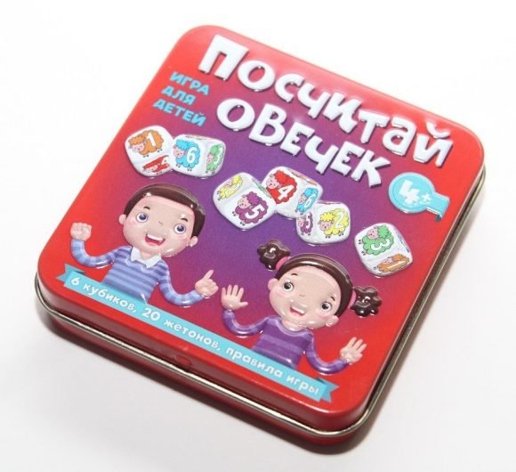 В наборе: 20 жетонов, 6 пластиковых кубиков, правила игры.