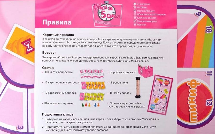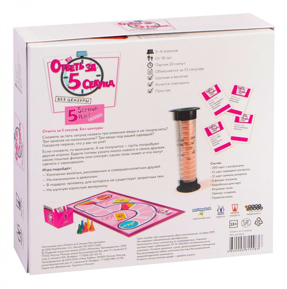 Настольная игра "Ответь за 5 секунд. Без цензуры"