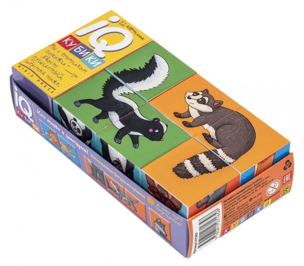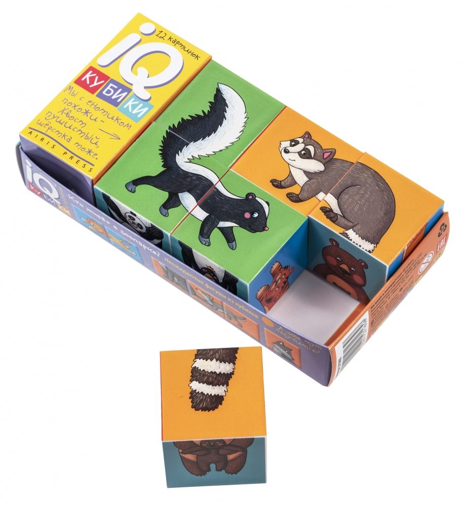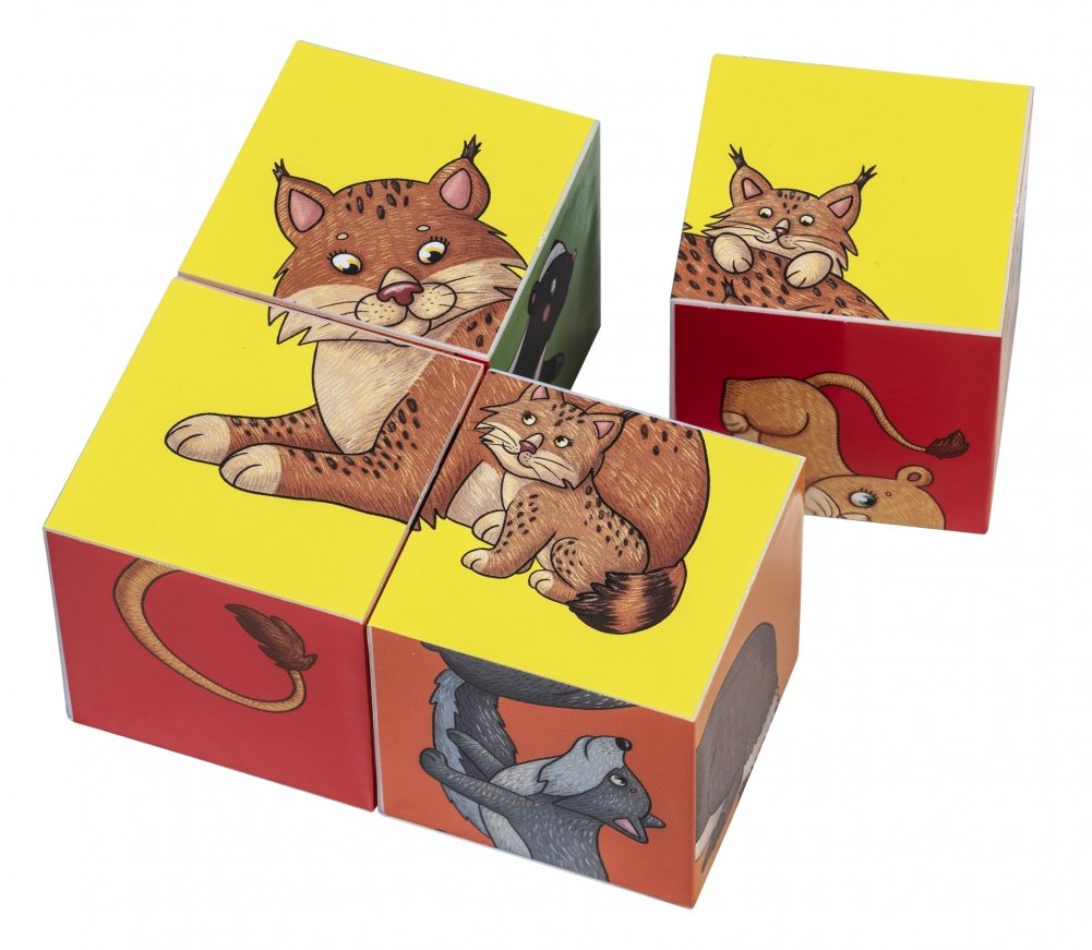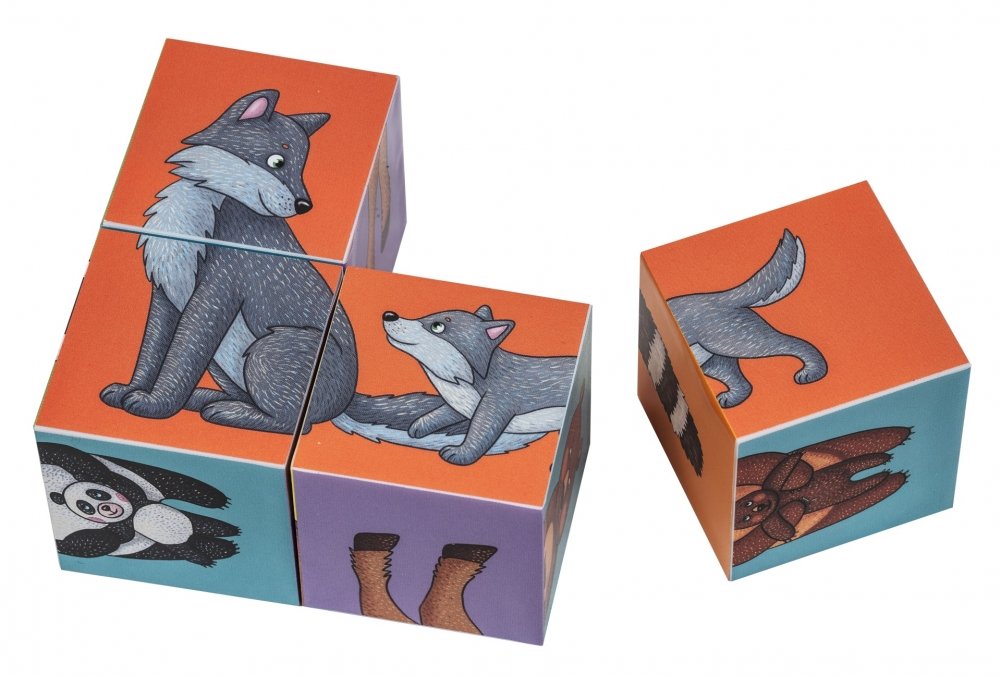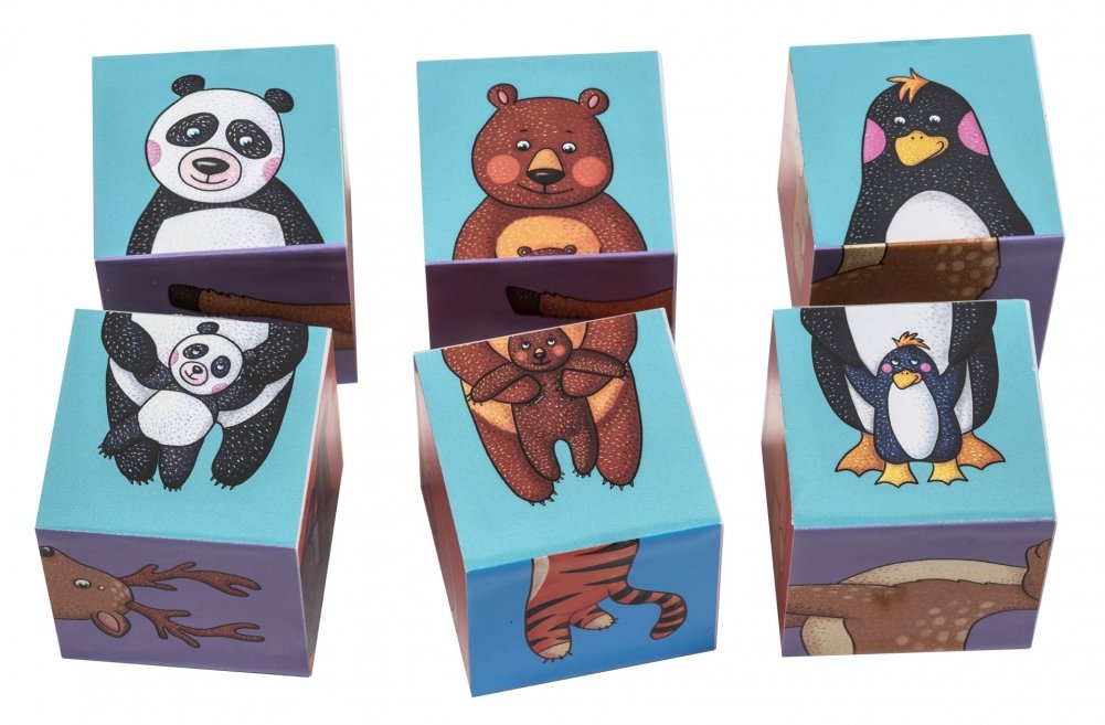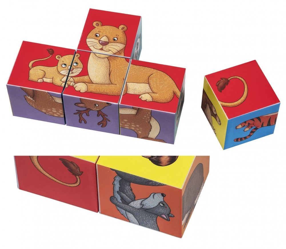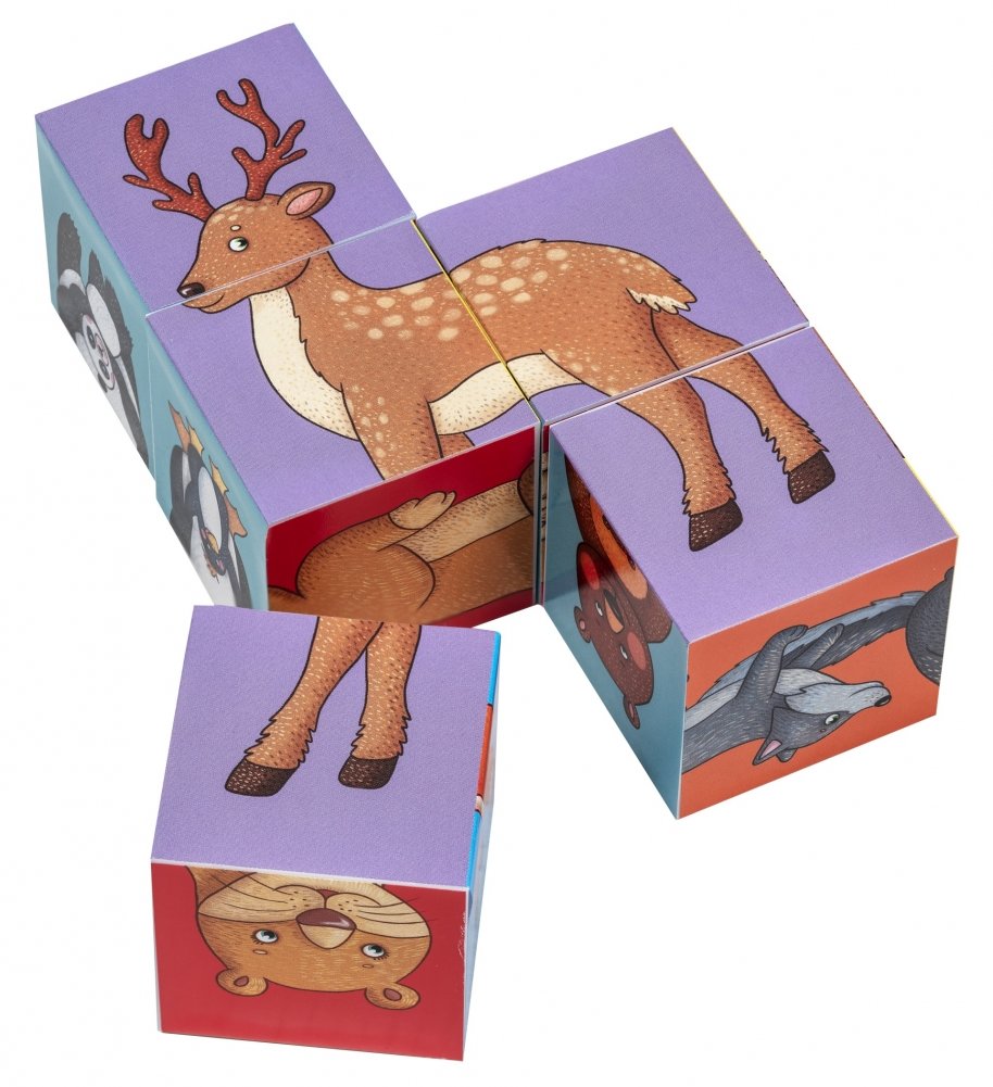 Эта игра поможет ребёнку творчески взглянуть на мир. Набор состоит из 6 кубиков размером 4х4 см. Но особенность состоит в том, что кубики складываются не в форме привычного прямоугольника, а в виде различных фигур. Ребёнку нужно сложить 12 картинок из двух, четырёх или пяти фрагментов. На обложке можно посмотреть, как выглядят готовые картинки с изображением животных. Во время игры происходит знакомство с понятиями "часть" и "целое", развивается нестандартное мышление. Наклейки на кубики сделаны из качественной гладкой бумаги, которая не портится от игры.