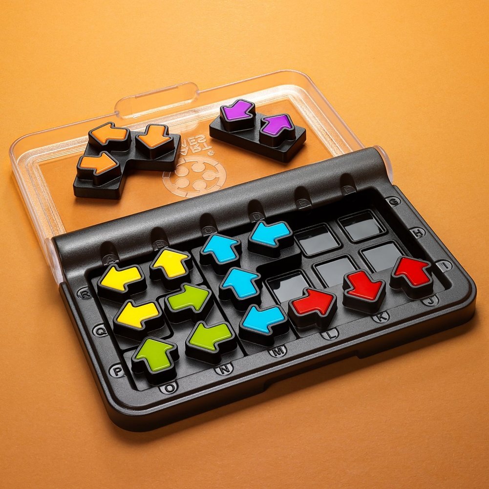 Внимание! Когда Вы поворачиваете деталь головоломки, направление стрелок меняется. IQ-стрелки – это уникальная игра для путешествий со 120 заданиями разных уровней сложности.