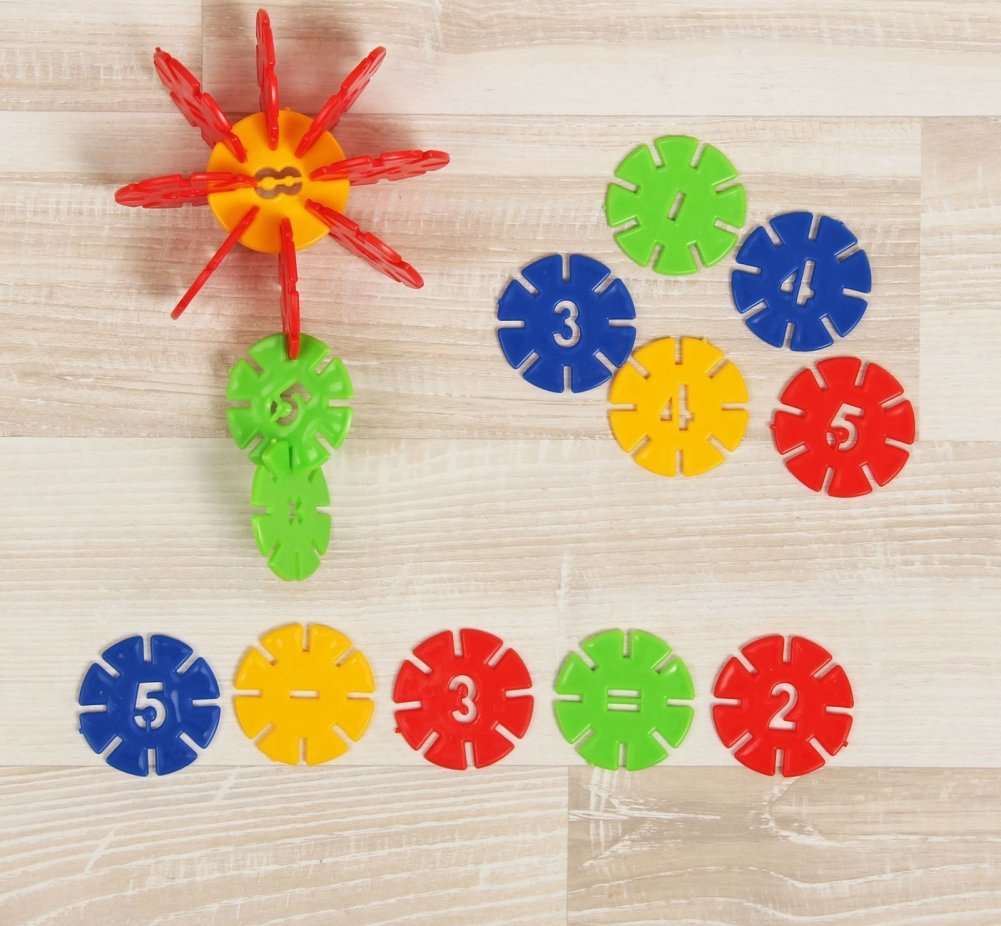 Занимаясь с конструктором, ребёнок быстро изучит цифры и математические знаки, расположенные на каждой детали, а также научится решать и составлять различные примеры.