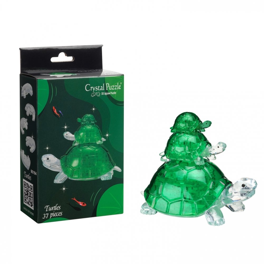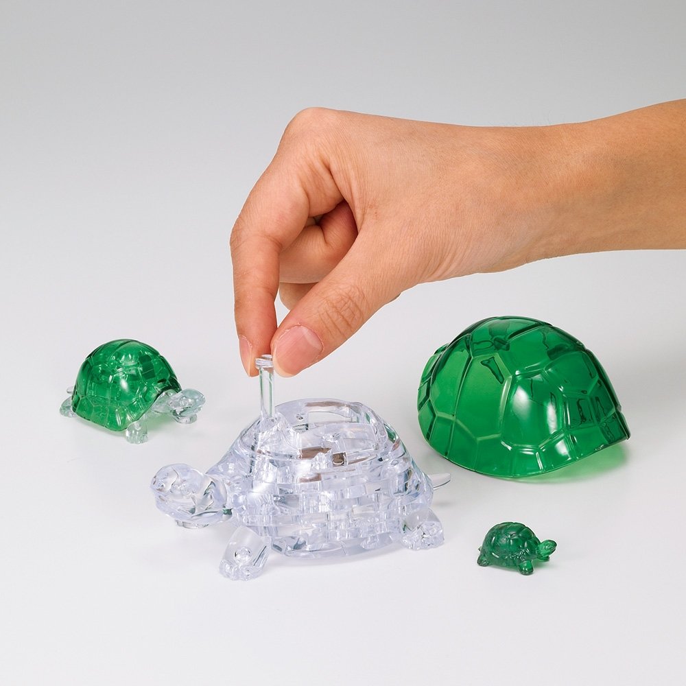 Черепахи — единственный пазл коллекции, который состоит из трех независимых фигур. Все они выполнены из полупрозрачного пластика зеленого и прозрачного цветов. Каждая черепаха порадует продуманной детализацией. В наборе вы найдете наклейки, чтобы сделать вашим черепахам глаза.