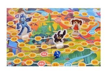 Игра начинается так же, как книга "Волшебник Изумрудного города": Элли и Тотошка оказываются в волшебной стране и знакомятся с новыми друзьями. Каждый ход вы бросаете кубик и двигаете вперёд свою фишку. По пути вас ждут разные приключения, знакомые по книге. Победит тот, кто первым дойдёт до Канзаса: это конец игры и волшебного путешествия. Это простая игра-бродилка для самых маленьких. Наверняка у вас была в детстве похожая. Может быть, вы даже сами её рисовали! Бродилка развлекает малышей и учит базовому счёту. А ещё терпению – ведь нужно ждать своего хода.
