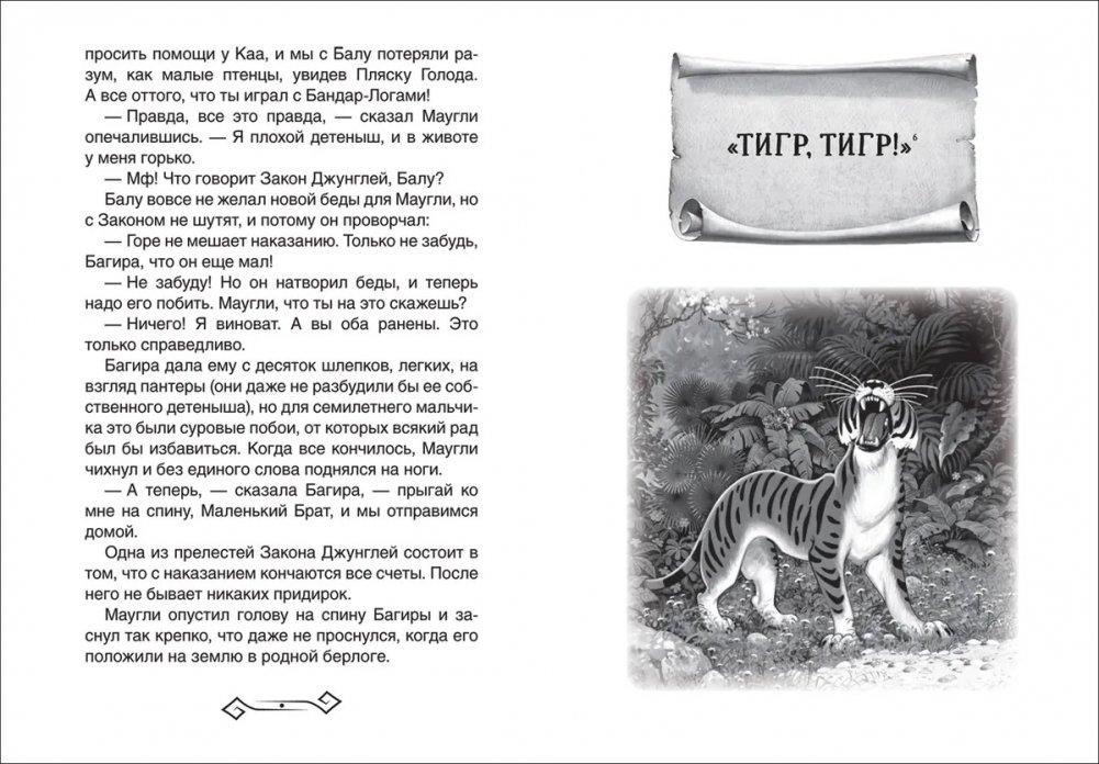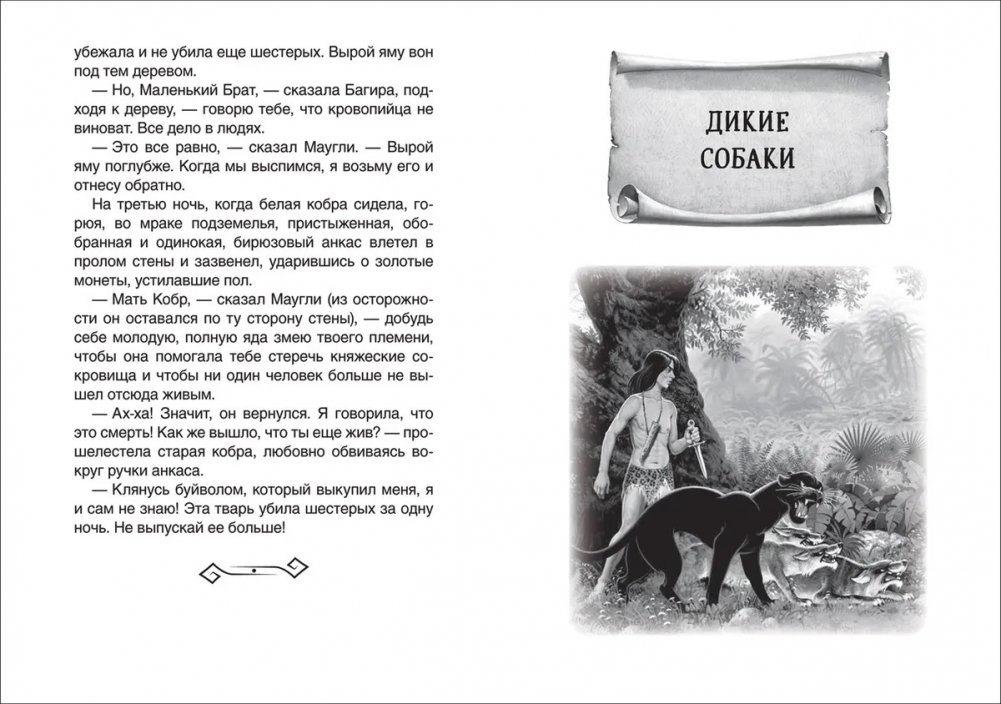 В книгу вошли рассказы из «Книги джунглей» английского писателя Редьярда Киплинга. Маугли — «человеческий детёныш», выросший в волчьей стае с пантерой Багирой и медведем Балу и победивший тигра Шер-Хана.