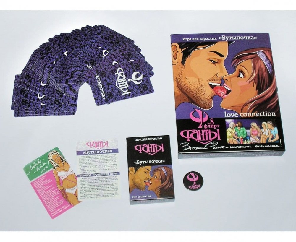 Игра «Бутылочка» включает сорок фантов-карточек с необычайно увлекательными и провокационными заданиями, а также карточки для проведения жеребьевок. Она рассчитана на компанию до 24-х человек.