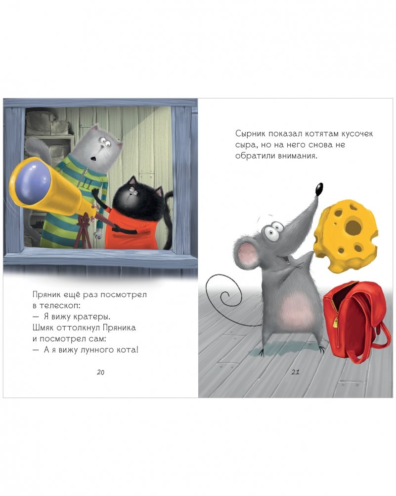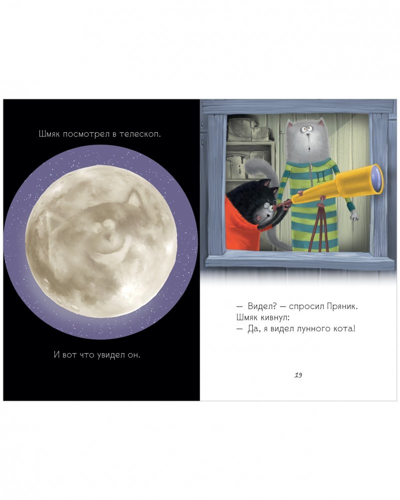 Однажды Шмяк и Пряник поспорили один был уверен, что с Луны на них смотрит лунный кот, а второй доказывал, что это кратеры от метеоритов.