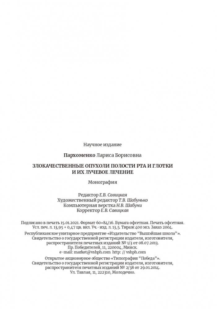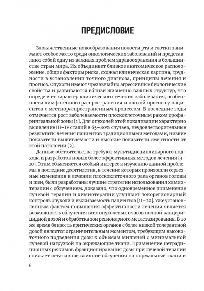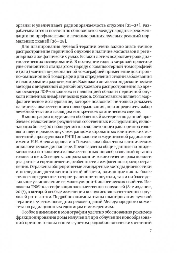 В монографии на основе собственного опыта и данных мировой литературы рассматривается широкий круг вопросов, посвященных проблеме лечения плоскоклеточного рака органов головы и шеи. Изложены общие сведения о злокачественных новообразованиях полости рта и глотки. Описаны методы лучевого лечения данных пациентов с радиобиологическим обоснованием режимов нетрадиционного фракционирования дозы излучения. Часть монографии посвящена собственным разработкам с описанием результатов двух клинических рандомизированных исследований по применению нового метода химиолучевого лечения с нетрадиционным режимом фракционирования и методов профилактики ранних лучевых реакций нормальных тканей с использованием магнитолазерной терапии и гипоксии.