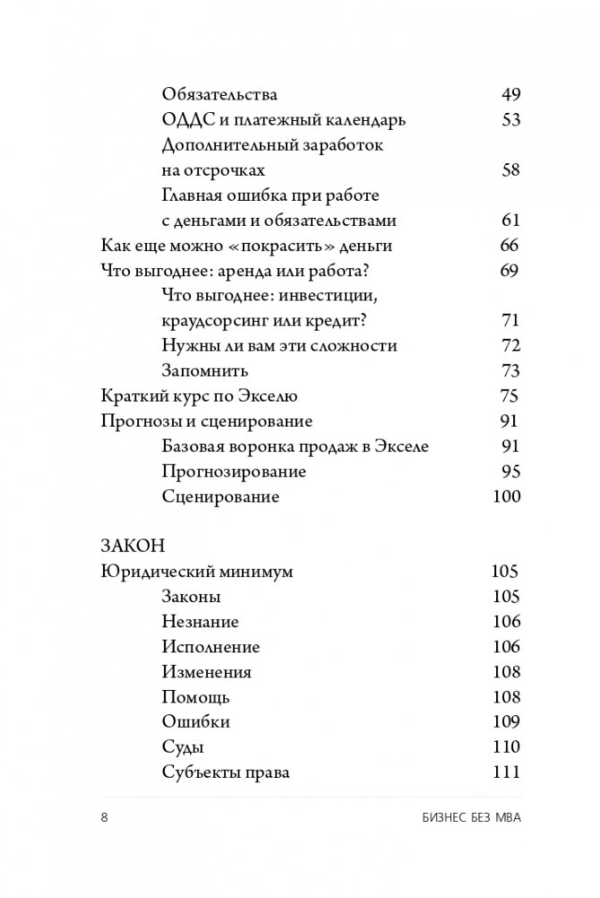 "Бизнес без MBA" — первая в России книга, которая закрывает разрыв между сухой теорией и голым вдохновением. Здесь собраны практические советы для тех, кто только начинает или уже начал своё дело — торговлю, разработку или услуги, в сегменте B2B или B2C. Здесь описаны самые важные вещи, которые помогут предпринимателю на старте: финансы, маркетинг, переговоры, клиентский сервис, отношения с партнерами и банками. Все советы и ситуации взяты из российской практики, на примере российского малого бизнеса. Здесь нет не связанной с жизнью теории и пустых слов вдохновения: только те знания, которые помогут защитить и развивать бизнес в суровых российских условиях. Авторы — эксперты Тинькофф Банка по финансам, экономике, маркетингу и управлению. Это люди, которые каждый день помогают малому бизнесу и знают его проблемы. Редактор — Максим Ильяхов, соавтор бестселлеров "Пиши, сокращай" и "Новые правила деловой переписки". Книга будет полезна всем, кто хочет вложить деньги в бизнес и получить прибыль, несмотря на сложные законы, непростые отношения с партнерами и жесткую конкуренцию.