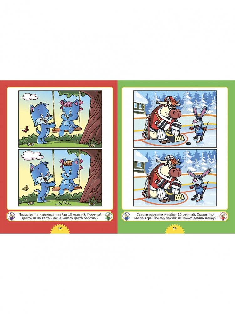 Перед вами книжка с яркими картинками, которые ваш ребёнок будет с интересом разглядывать, находя отличия между ними и развивая своё внимание. А отвечая на несложные вопросы, он научится простому счёту, логически мыслить, сможет различать цвета и формы предметов. Вместе со своим ребёнком вы весело и с пользой проведёте время!